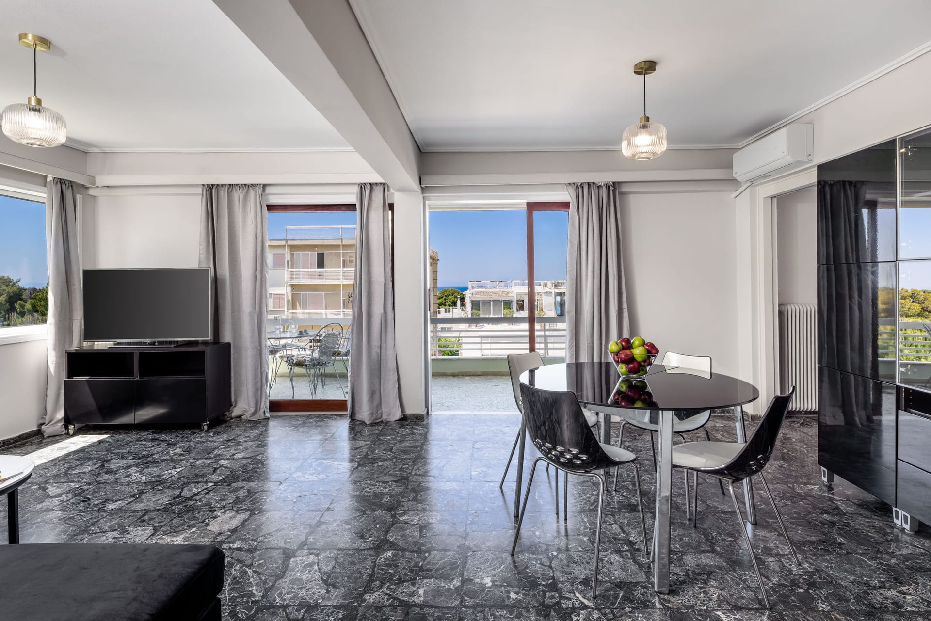 Discover the charm of Seaside Secret, a stylish two-bedroom apartment with beautiful sea views from its spacious balcony. Just steps from the beach, this elegant retreat features a king-size bed, two single beds, a modern bathroom with rain shower, a fully equipped kitchen, washing machine, flat-screen TV and Wi-Fi. Located on the third floor, it offers both comfort and tranquility—a true hidden gem by the sea. Great for families or small groups.